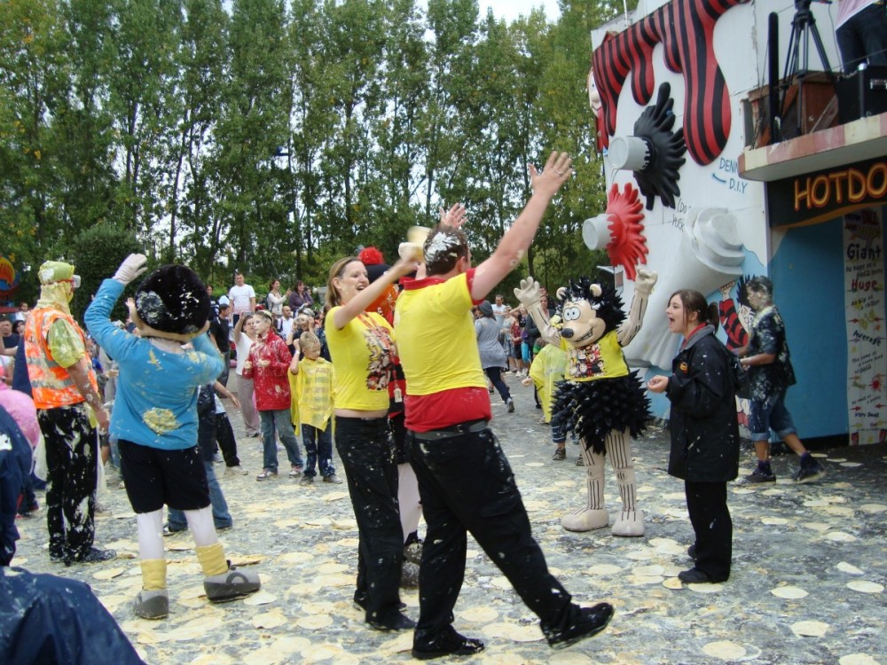 So how does the story end, well with a huge custard pie fight! As Chessington go for the world record, at 5pm on Sunday 20th September 2009, a huge number of children and adults got involved in a huge custard pie fight, which, covered the whole of Beanoland!